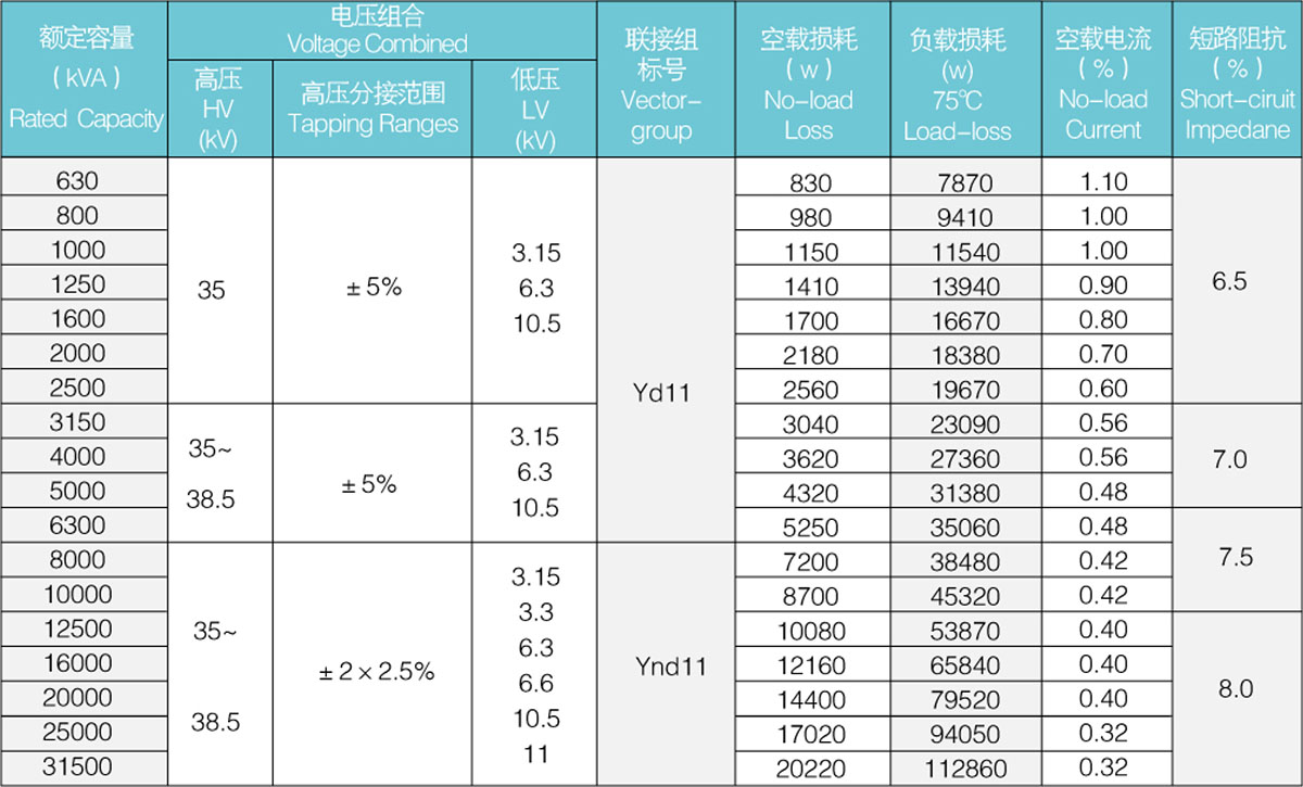 This product implements the national standard GB1094-1996 "Power Transformer" and GB/T6451-2008 "Three-phase oil-immersed power transformer technical parameters and requirements". S11 series transformers are a new series of low-loss copper winding products. This product uses excellent materials. In the coil body and insulation, new technology and new materials are used to reduce the no-load and load loss, and the performance and structure are reliable and excellent.