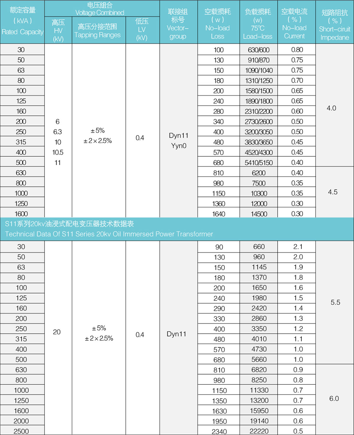 On the basis of the S9 series, the S11 series products have an average no-load loss of 30%, and the no-load current is 70%-85% lower than S9.